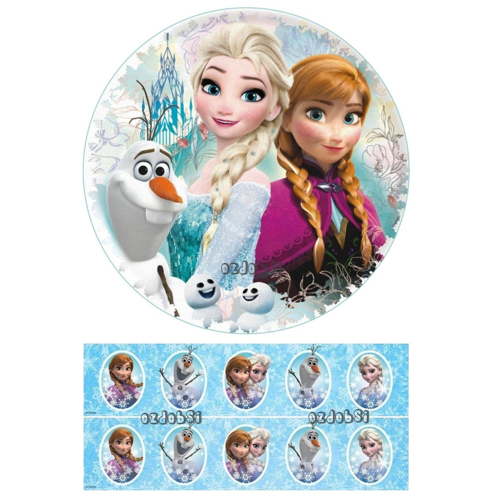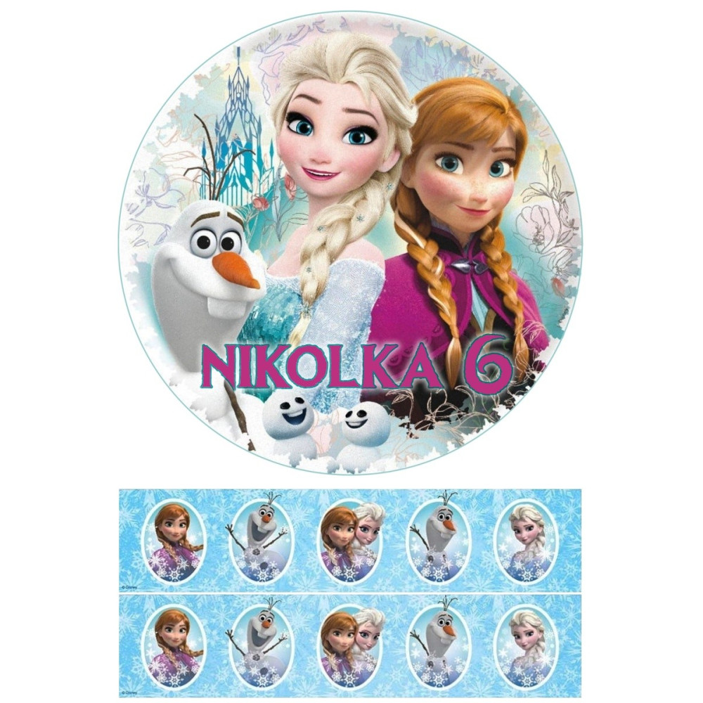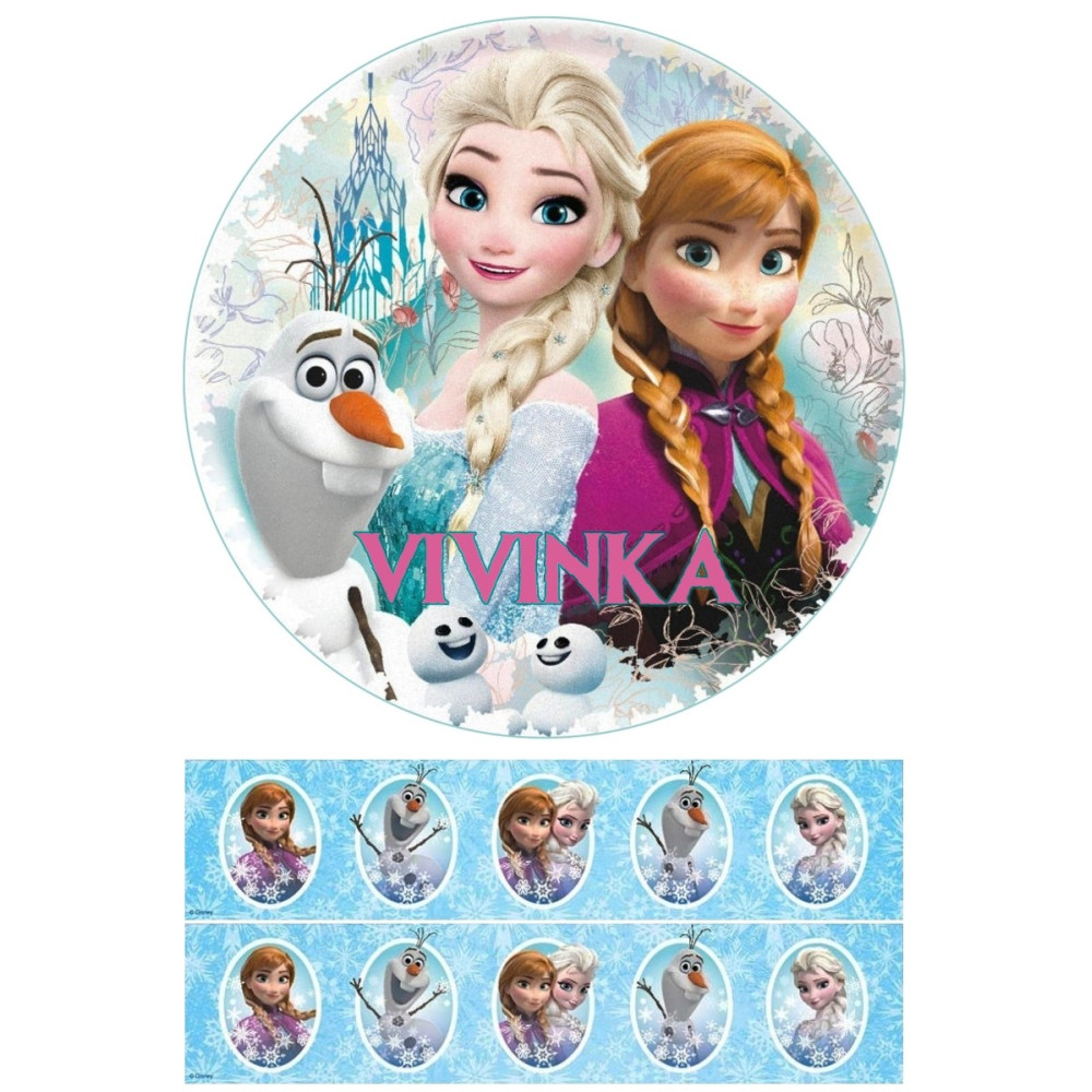 Obsahuje jedlý papír s motivem Ledového království.