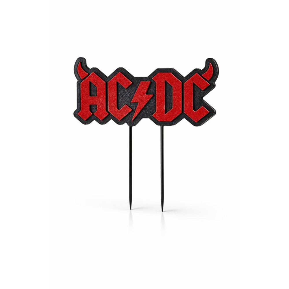 Logo s nápisem "AC/DC" a růžky teto oblíbené kapely.