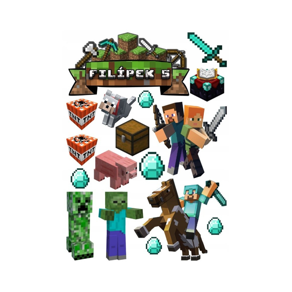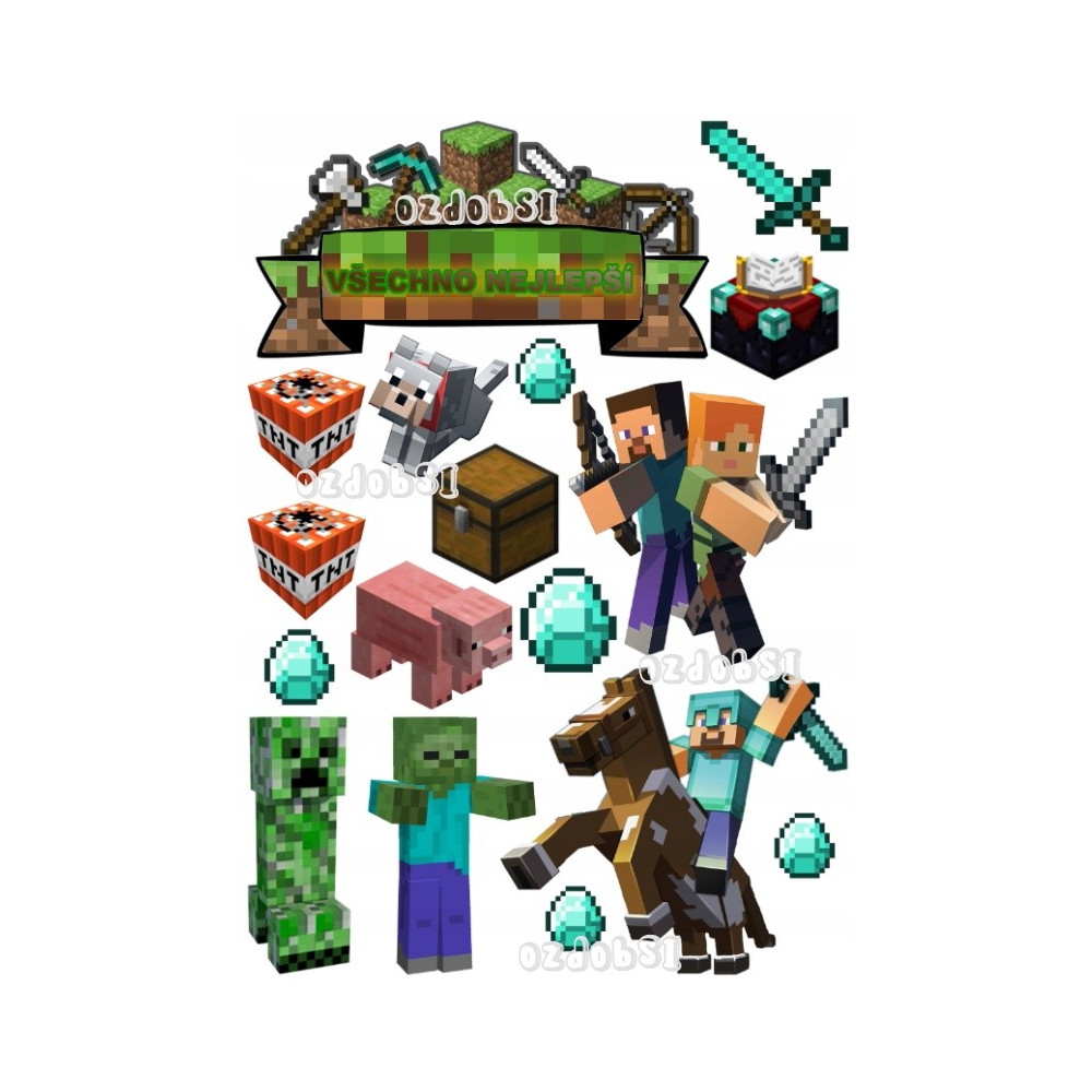 Obrázek Minecraft doplněný o malé obrázky. Obrázky jednoduše vystřihnete nebo vyříznete a...