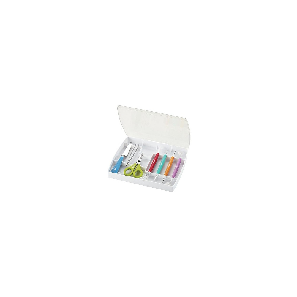 Sada obsahuje 3 modelovací kostice, kartáček na čištění vypichovačů, nůžky, pinzetu a paletku.