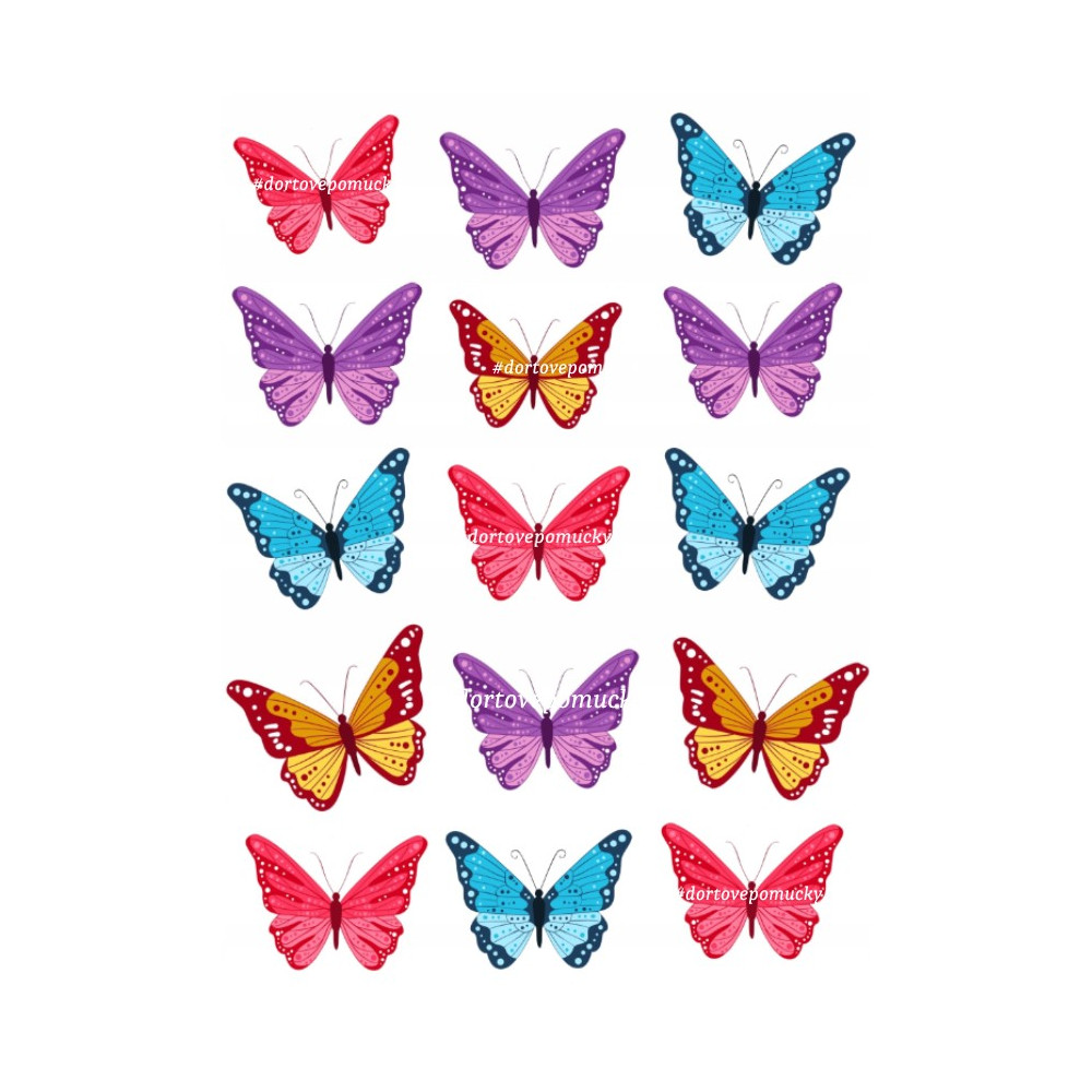 Obsahuje jedlý papír s motivem různě velkých a barevných motýlů.