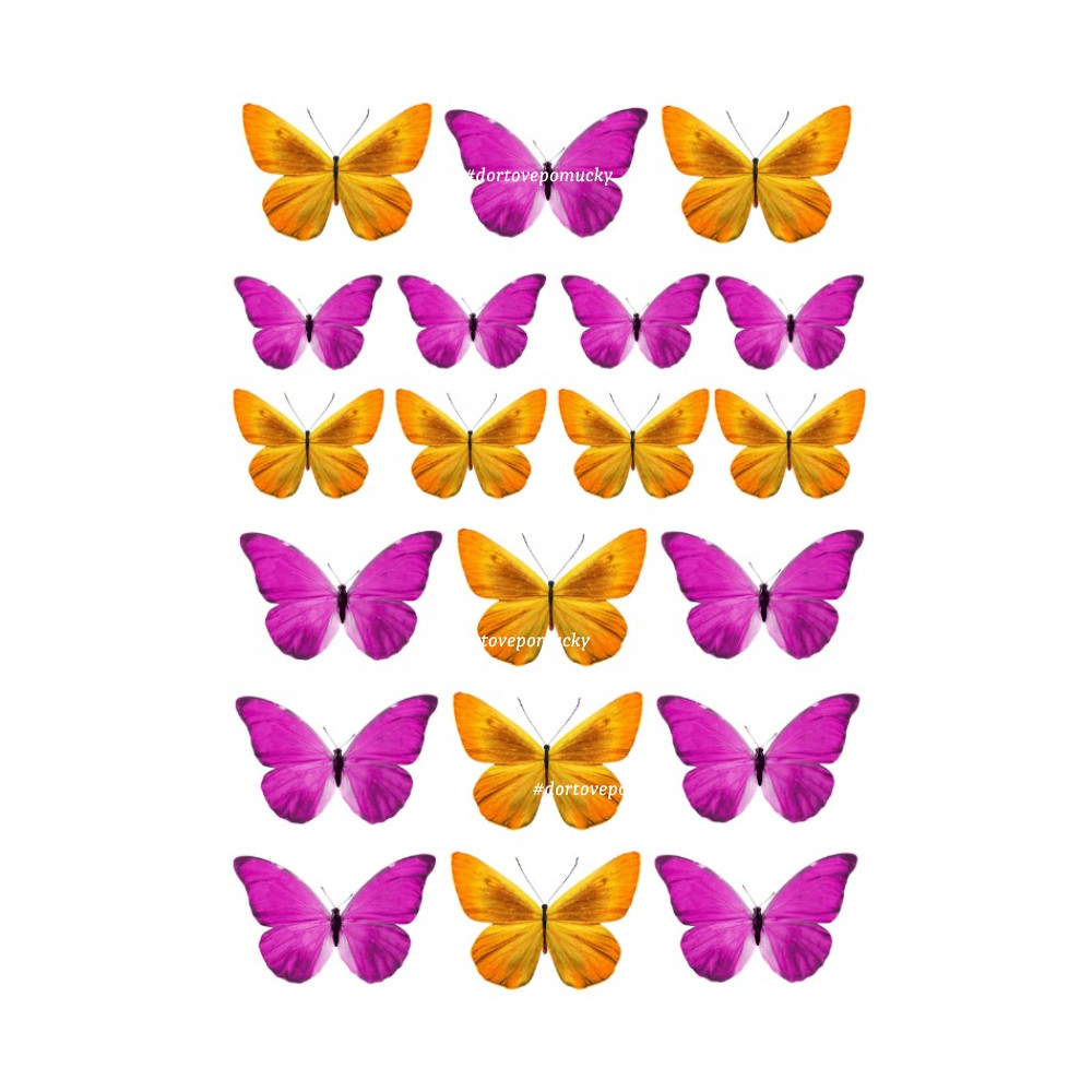 Obsahuje jedlý papír s motivem různě velkých a barevných motýlů.