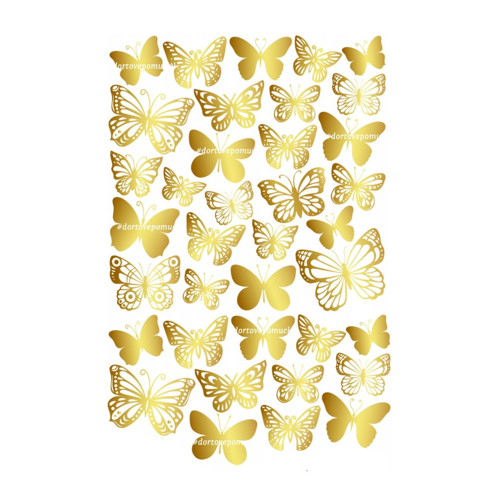Obsahuje jedlý papír s motivem různě velkých a barevných motýlů.