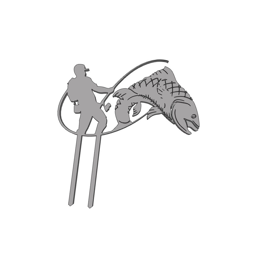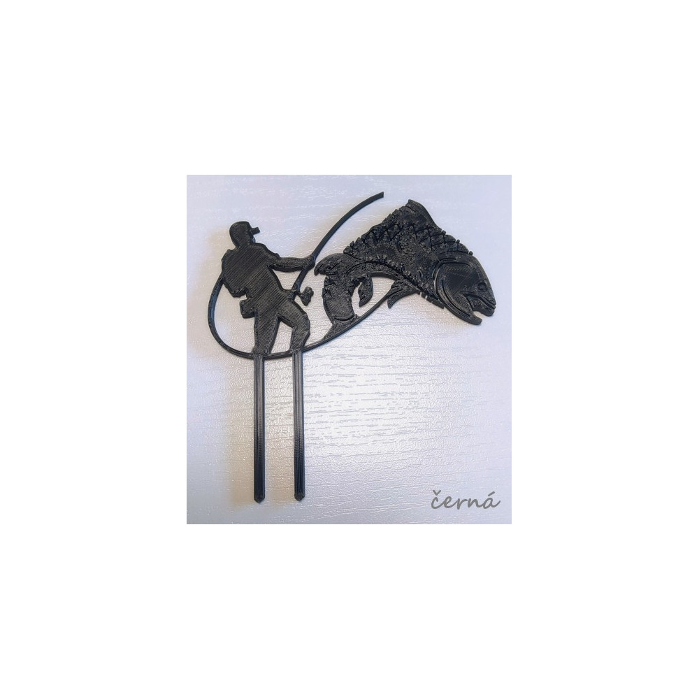 Lovící rybář s krásnou rybou - plastová dekorace.