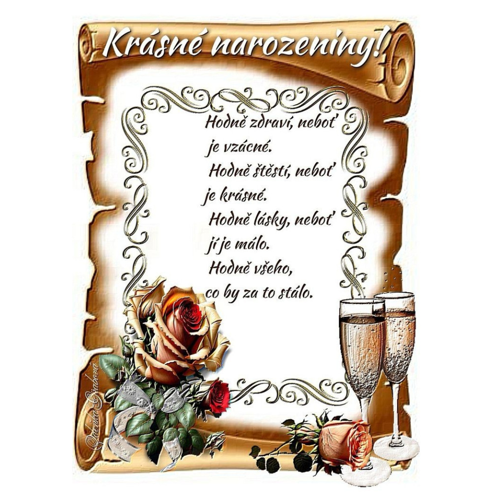 Přání na jedlém papíře Krásné narozeniny s veršem.