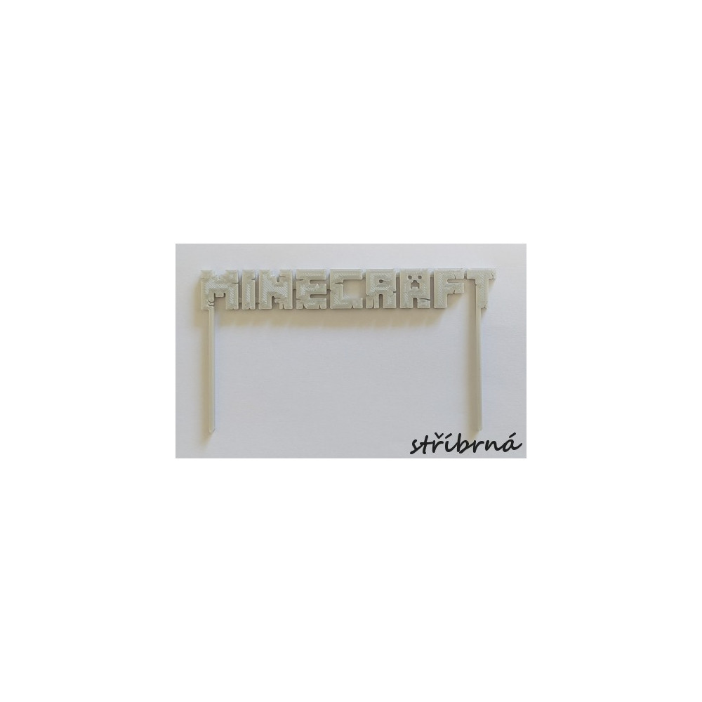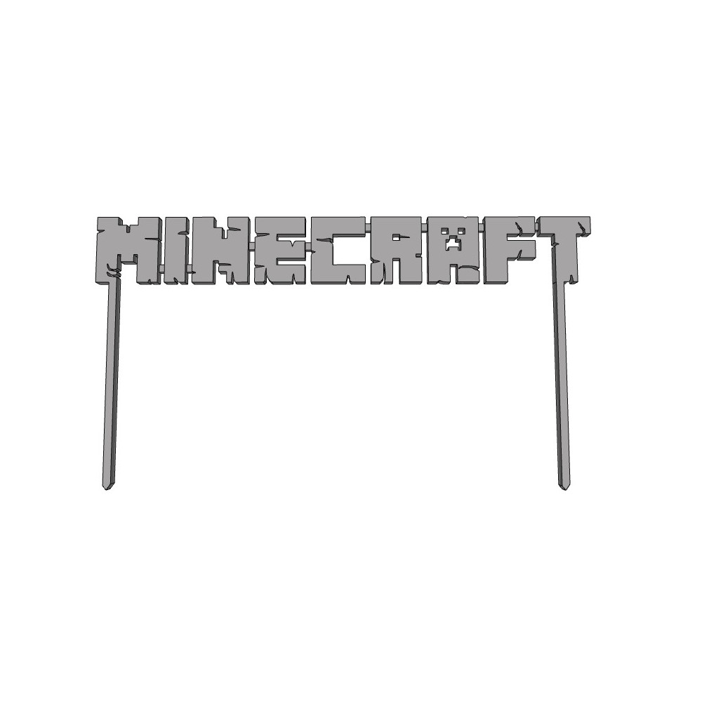 Minecraft silueta s nápisem jako dortový zápich. Rozměr dekorace: 120x65x2 mm + 55 mm zápich....