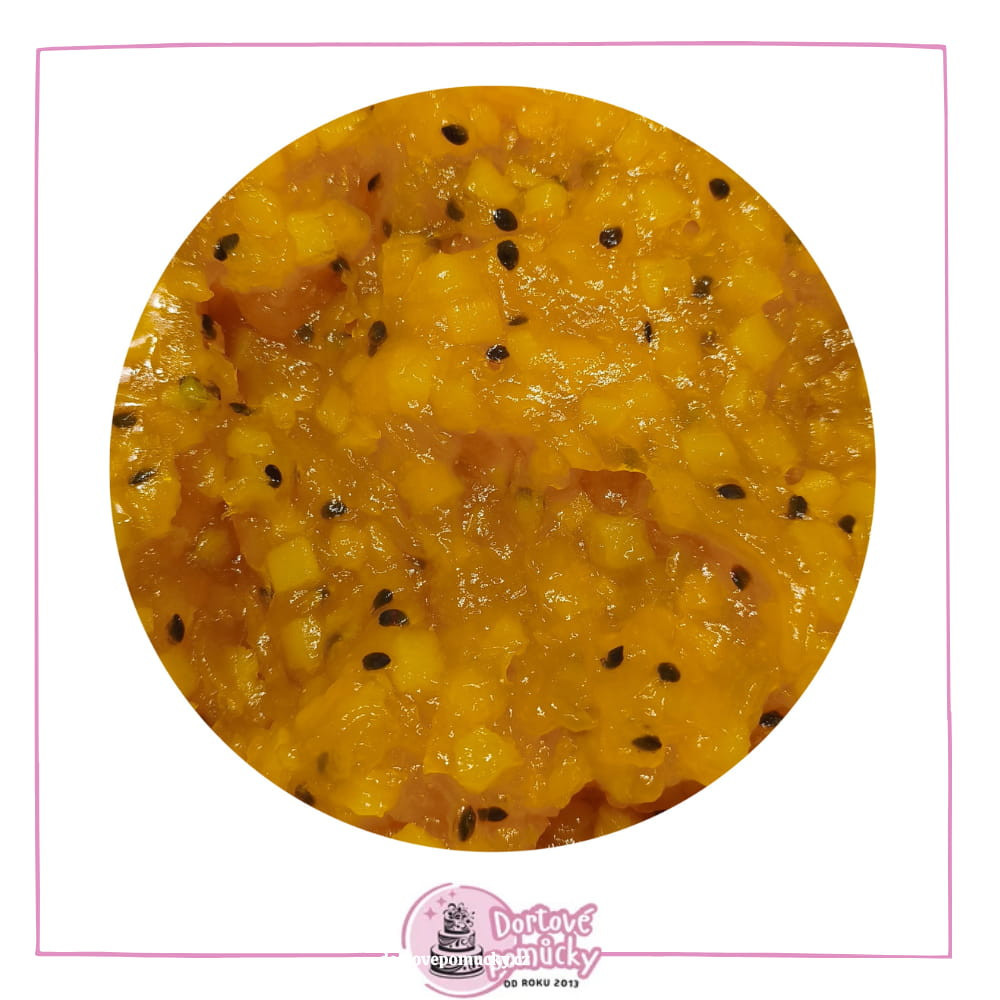Ovoce v gelu Mango s maracujou je hotový ovocný gel s hladkou strukturou, určený pro cukrářské a pekařské použití.