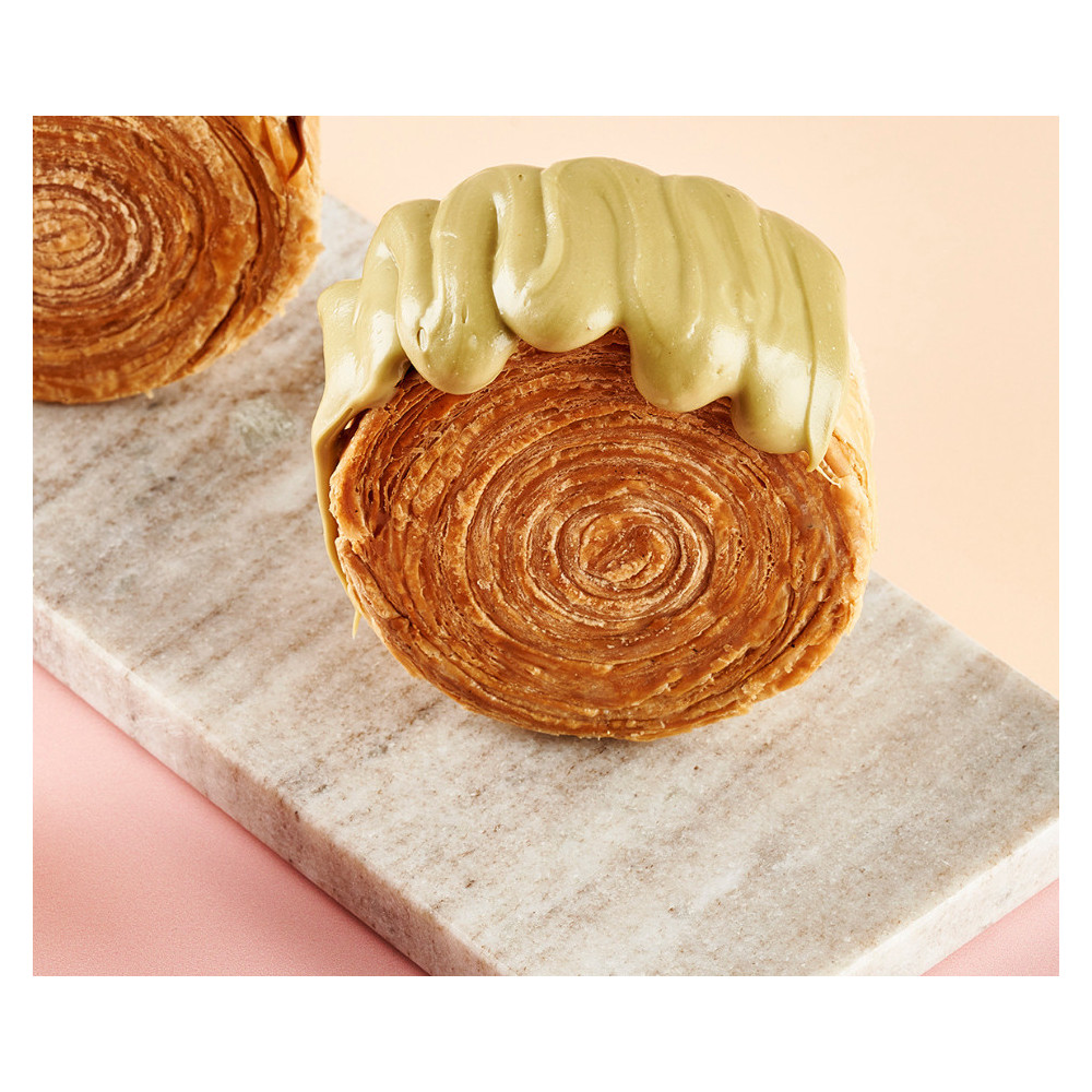 Tato prémiová termostabilní krémová náplň s 15% podílem pistácií vyniká přirozenou barvou, intenzivní chutí a hedvábnou texturou,