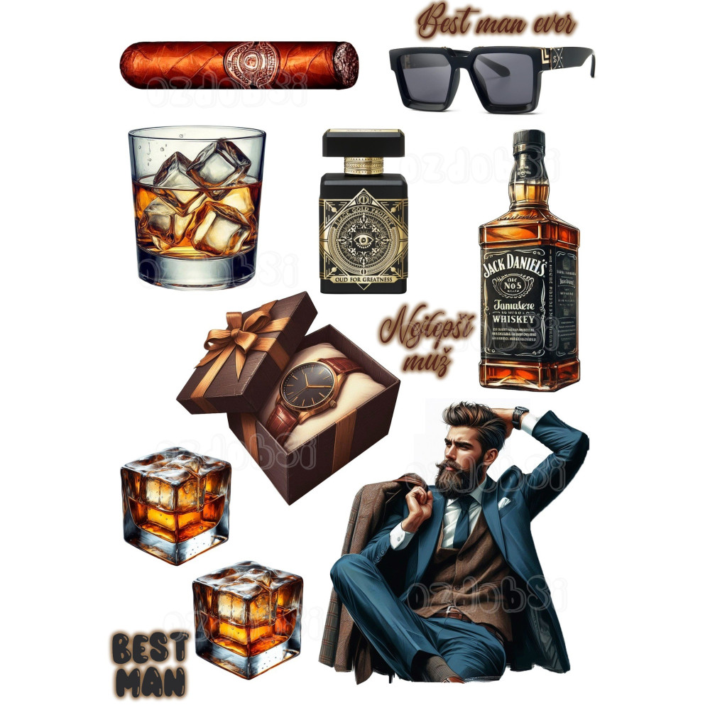 Obsahuje jedlý papír s motivem luxusních pánských doplňků.