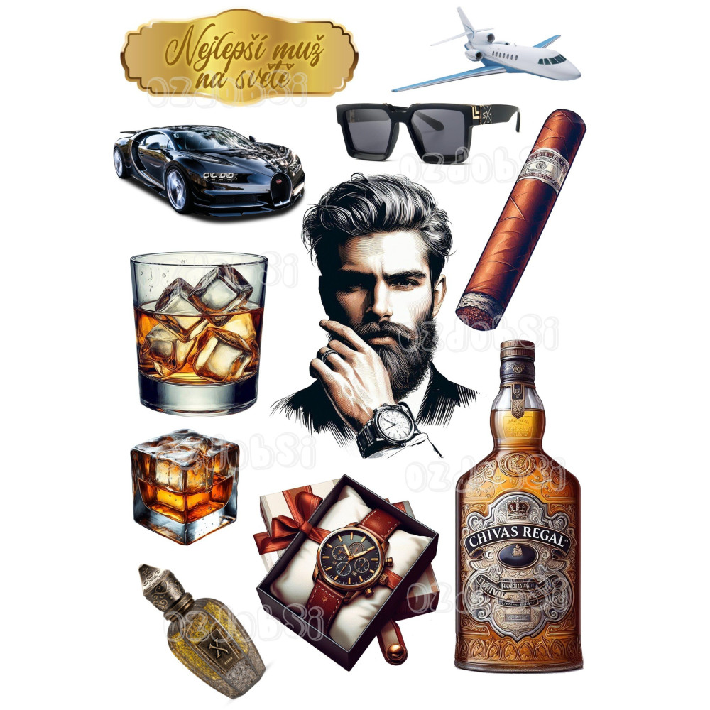 Obsahuje jedlý papír s motivem luxusních pánských doplňků.