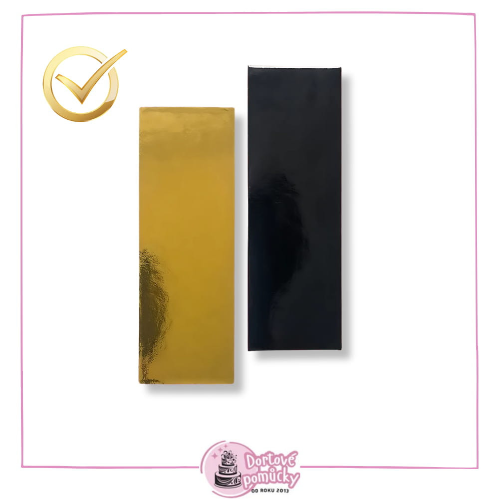 Zlato-černá, obdélniková, potažená fólií odolnou proti vlhku.