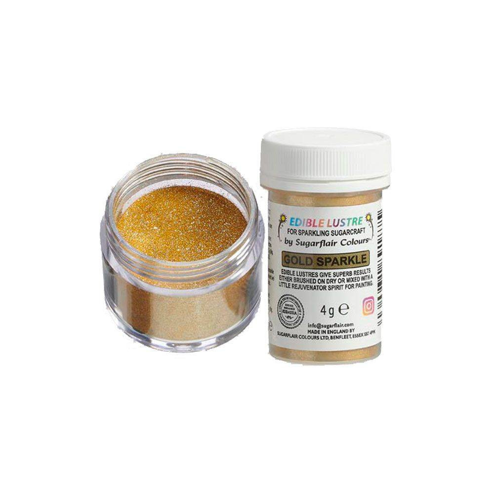 Sugarflair Gold Sparkle Edible Lustre je vysoce kvalitní jedlá prachová barva z řady Edible Lustre renomované značky Sugarflair Colours. Vytváří výrazný zlatý perleťový a třpytivý efekt.