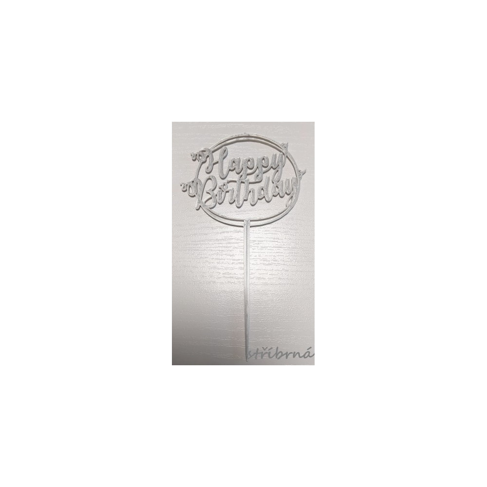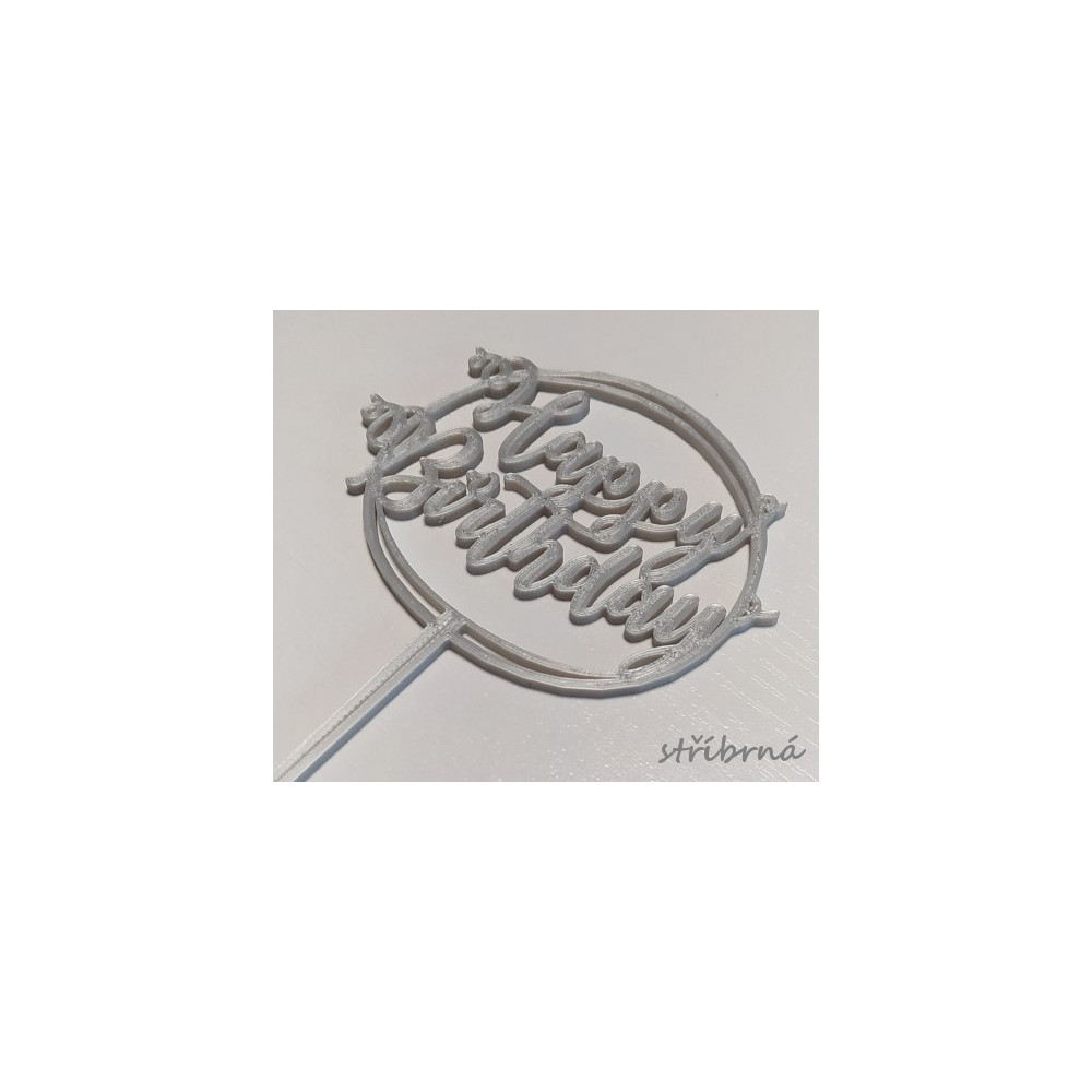 Happy Birthday ve dvojitém kroužku - plastová dekorace.