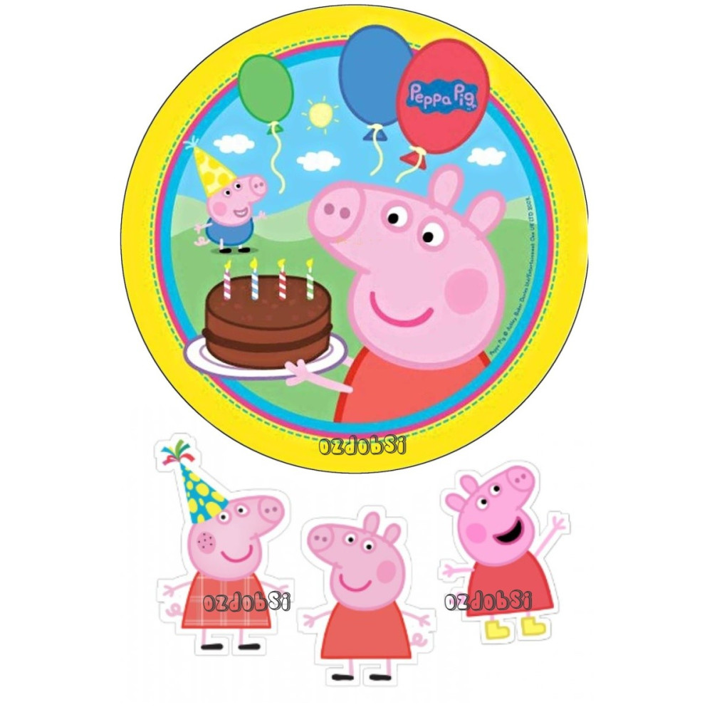 Jedlý papír prasátko Pepina s motivy hlavních hrdinů. Při variantě s úpravou, napište požadavek...