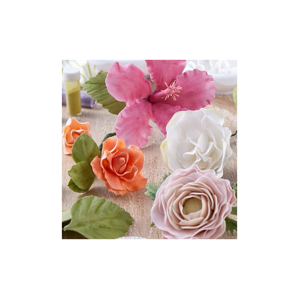 Gum pasta je rychle schnoucí a jde dotenka rozválet. Použít lze k přípravě květin, listů a jemných dekorací.
