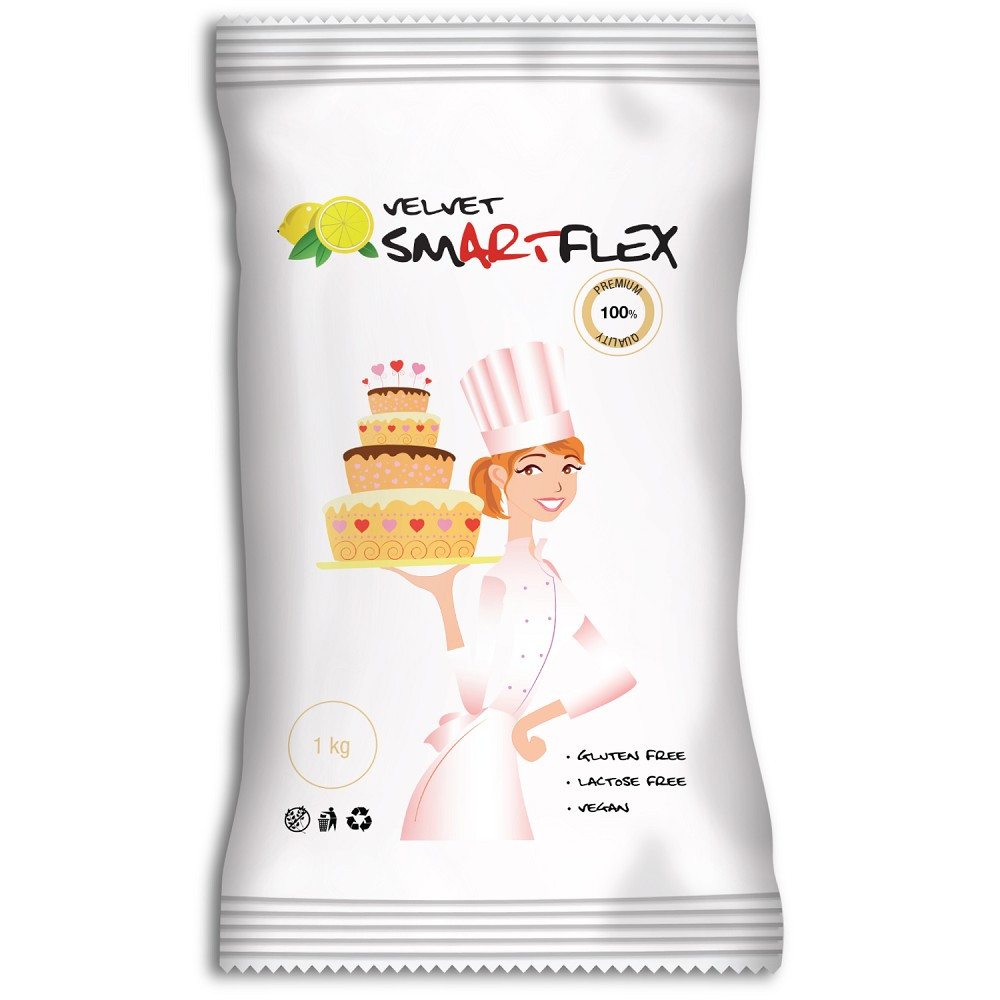 SmartFlex Velvet – cirton je extra pružná potahovací a modelovací hmota s jemnou mandlovou chutí, která vyniká svou elasticitou a snadnou manipulací. Nelepí se, rychle drží tvar a nesesedá, což ji činí ideální pro potahování dortů a tvorbu dekorací všech velikostí.