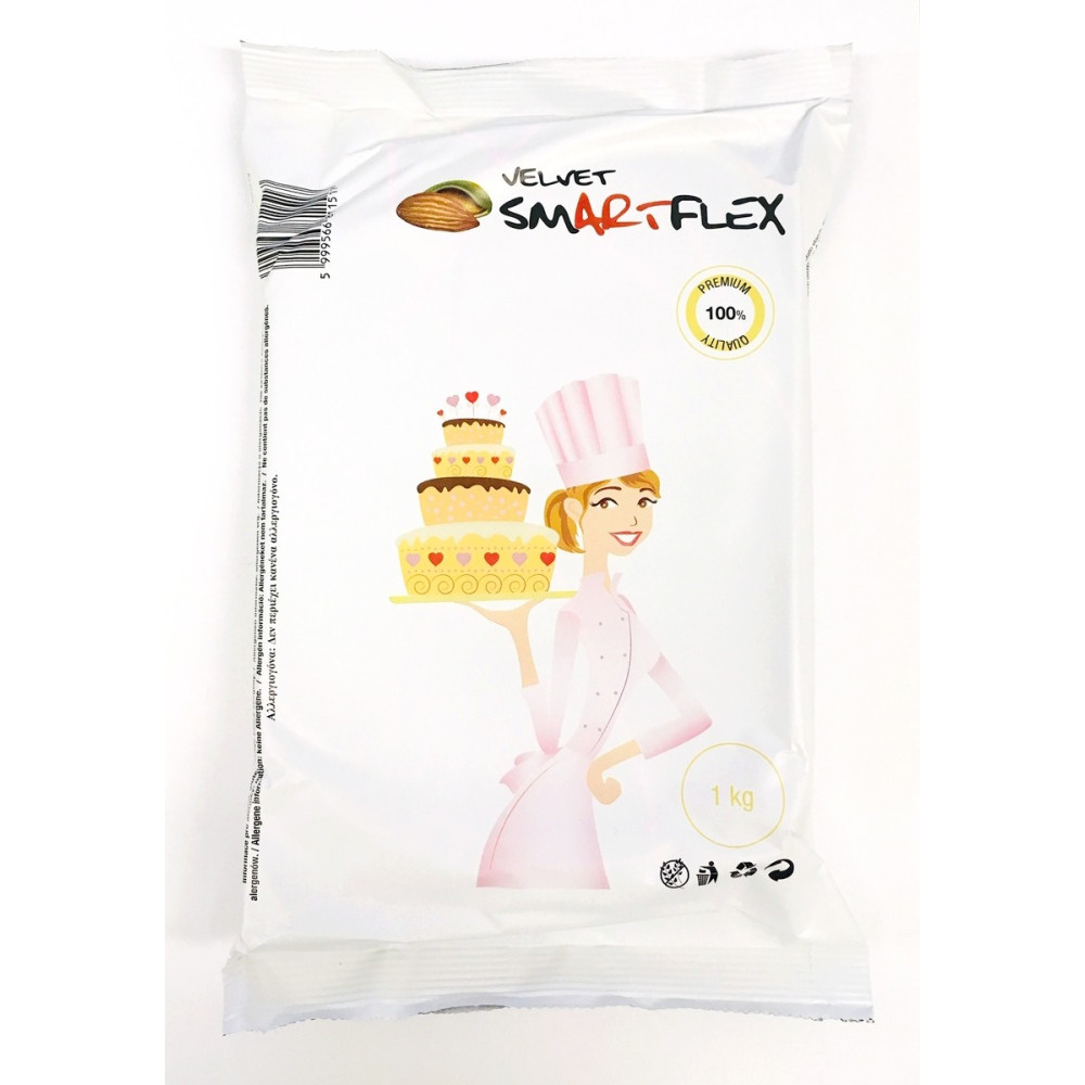 SmartFlex Velvet – mandle je extra pružná potahovací a modelovací hmota s jemnou mandlovou chutí, která vyniká svou elasticitou a snadnou manipulací. Nelepí se, rychle drží tvar a nesesedá, což ji činí ideální pro potahování dortů a tvorbu dekorací všech velikostí.