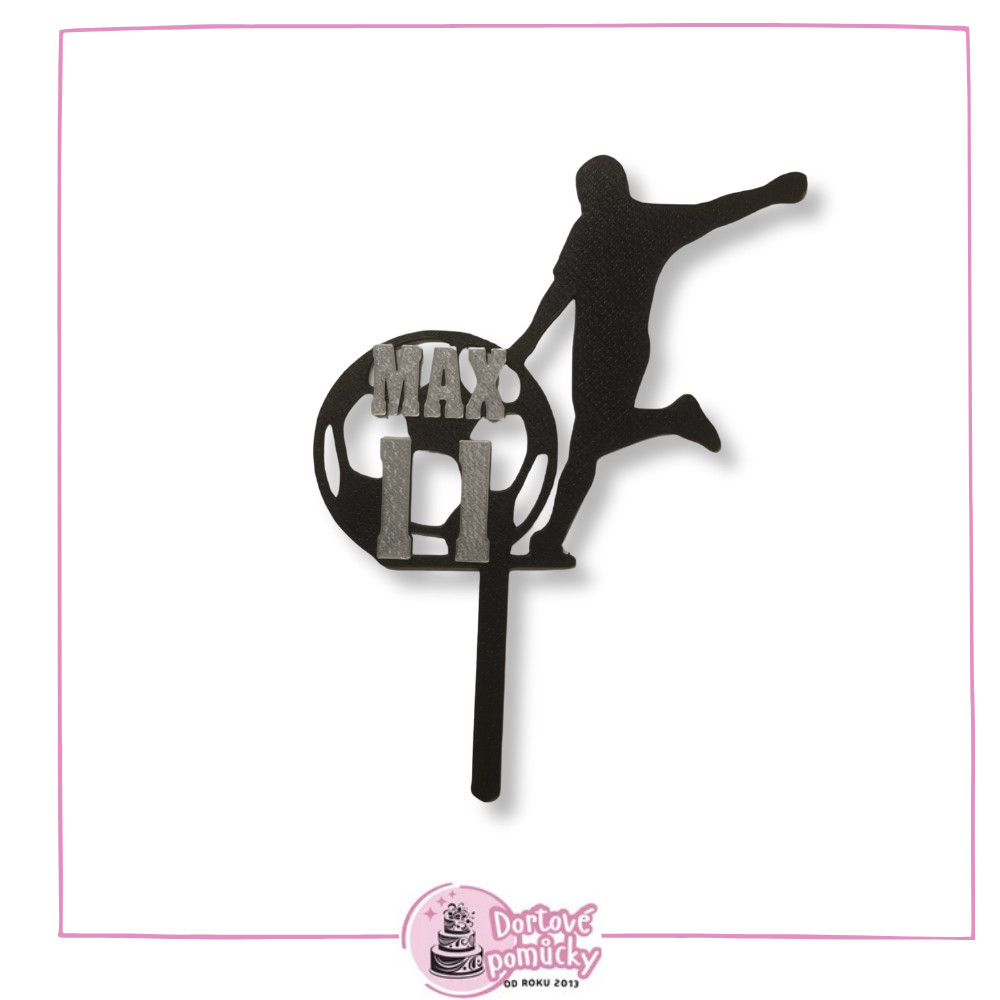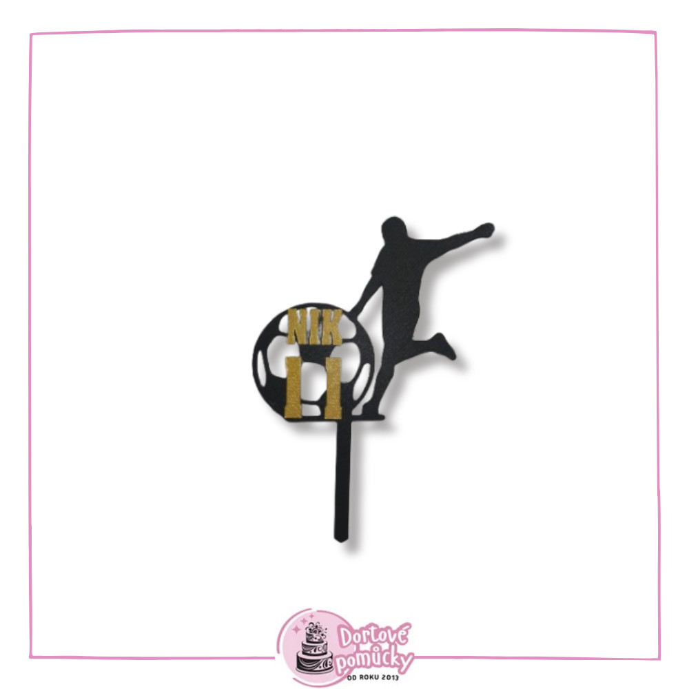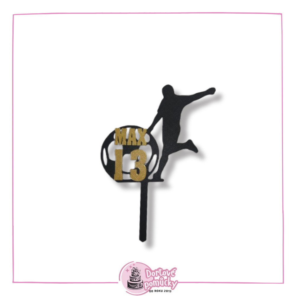 Dortový zápich Fotbalista s velkým míčem, jménem a číslici na vaše přání.