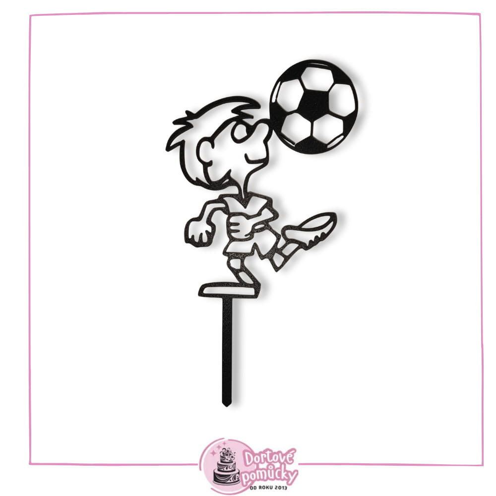 Dortový zápich s obrysem fotbalistu s míčem.