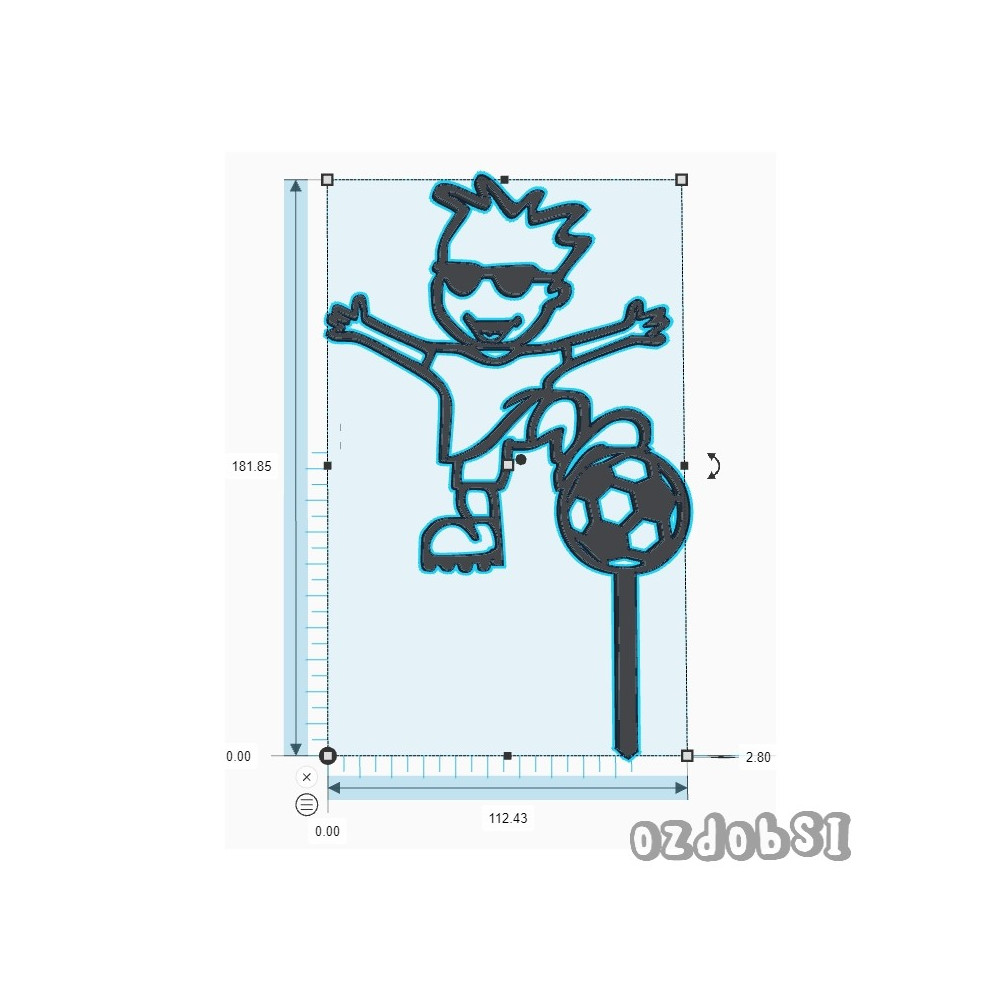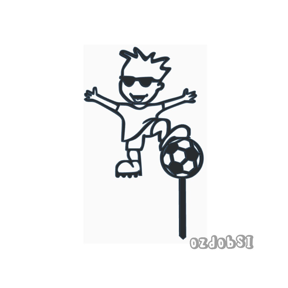 Dortový zápich s obrysem fotbalistu s míčem.