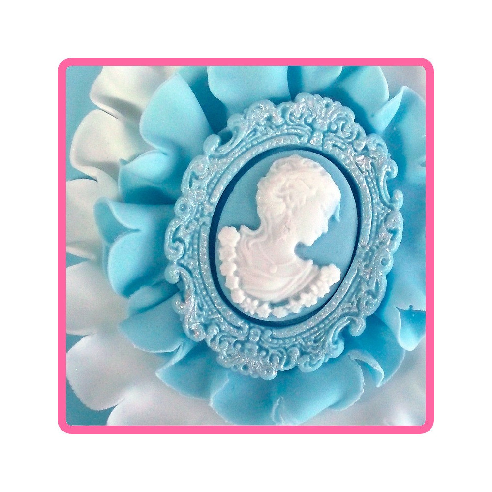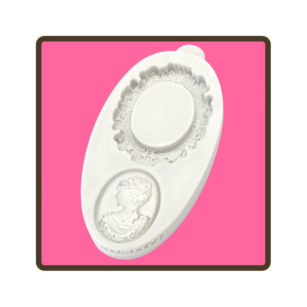 Vysoce detailní forma, miniaturně zdobený oválný rám a samostatný portrét paní, z pravé strany....