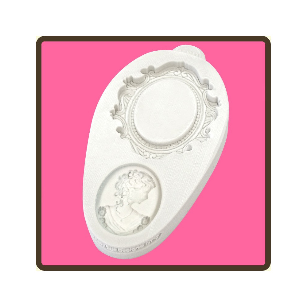 Vysoce detailní forma, miniaturně zdobený oválný rám a samostatný portrét paní, z pravé strany.