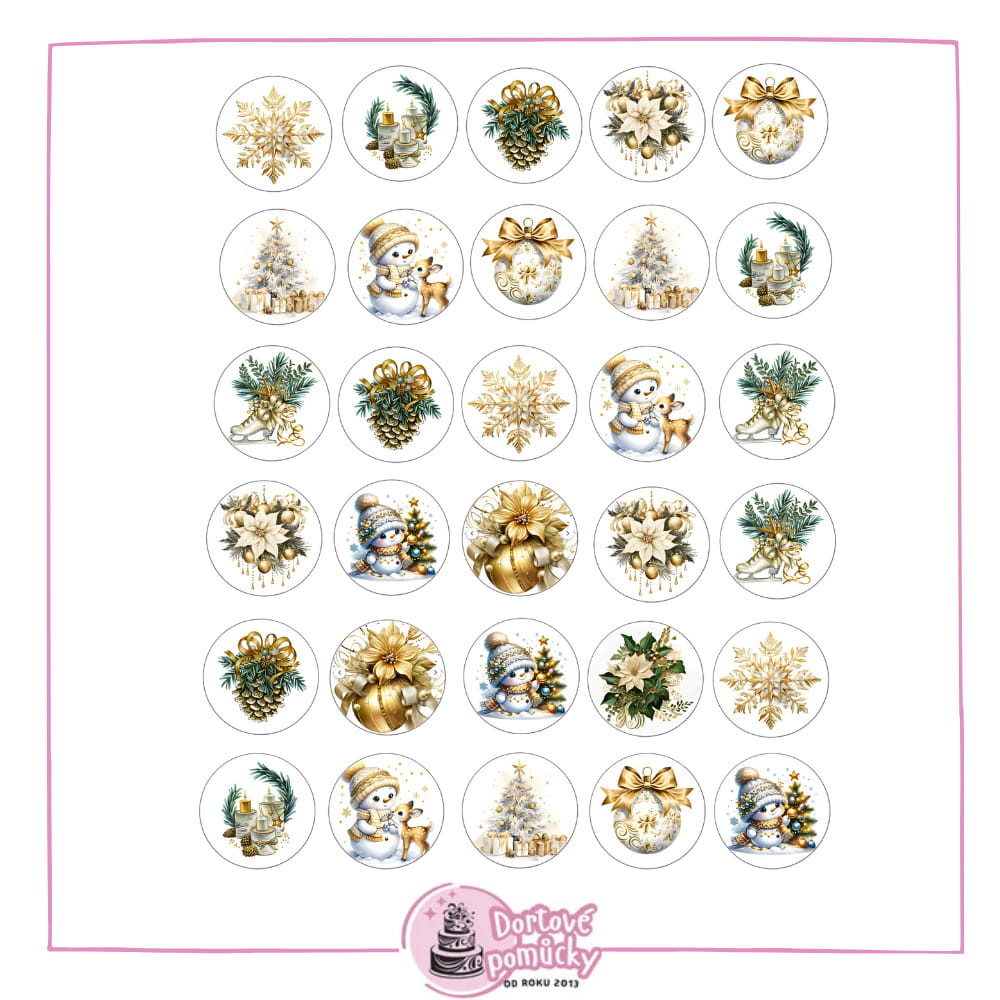 Vánoční motivy zlatobílé - jedlý papír nebo fondánový list