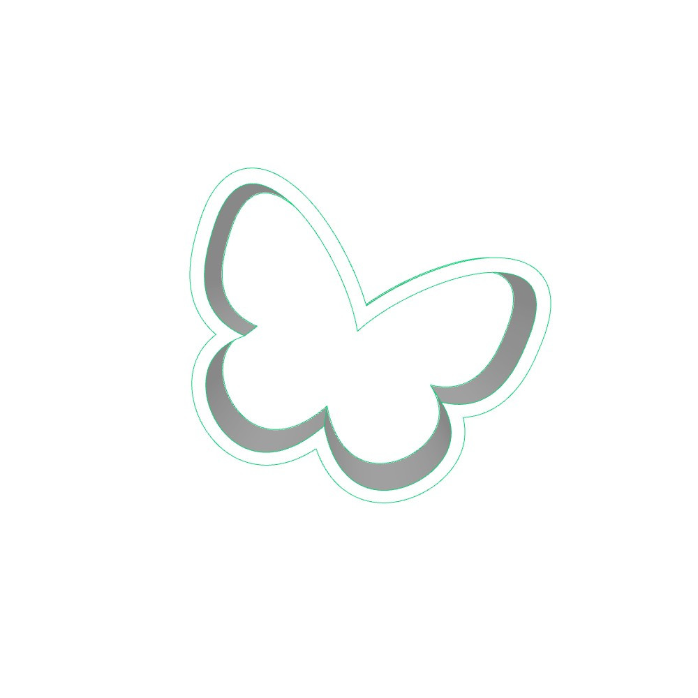Jednodílné plastové vykrajovátko ve tvaru motýla.