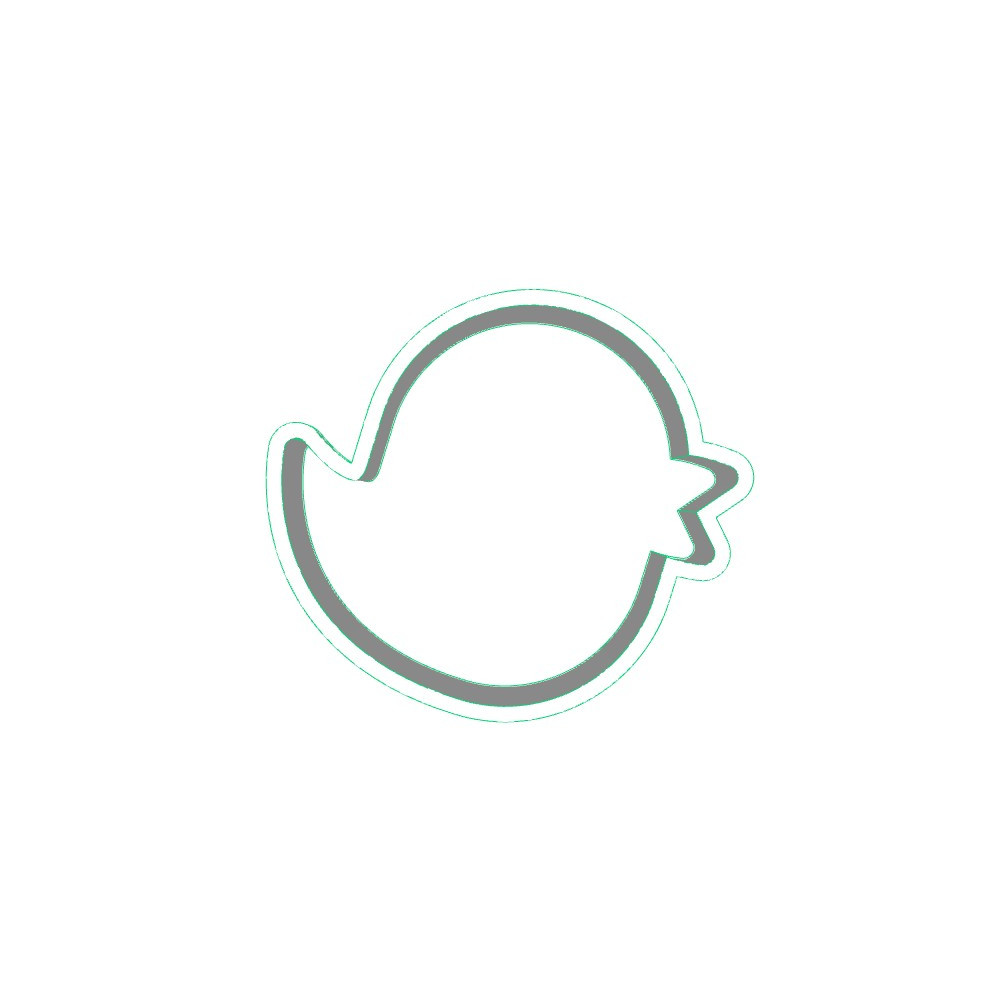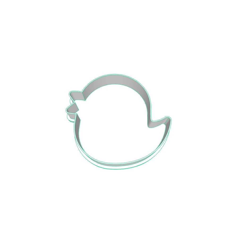 Jednodílné plastové vykrajovátko ve tvaru velkého kuřátka.