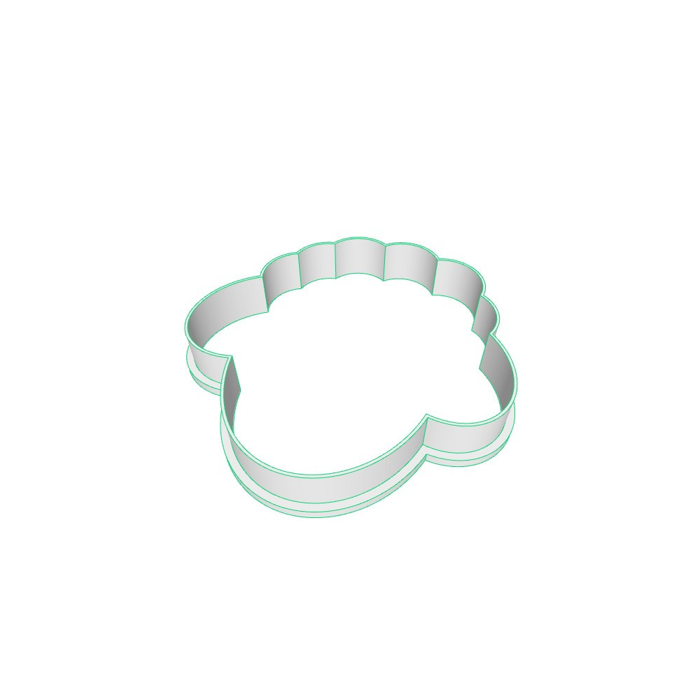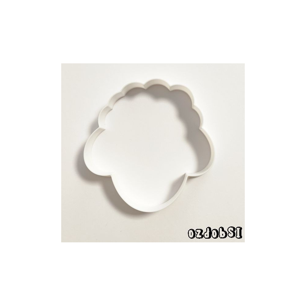 Jednodílné plastové vykrajovátko ve tvaru hlavy ovečky.