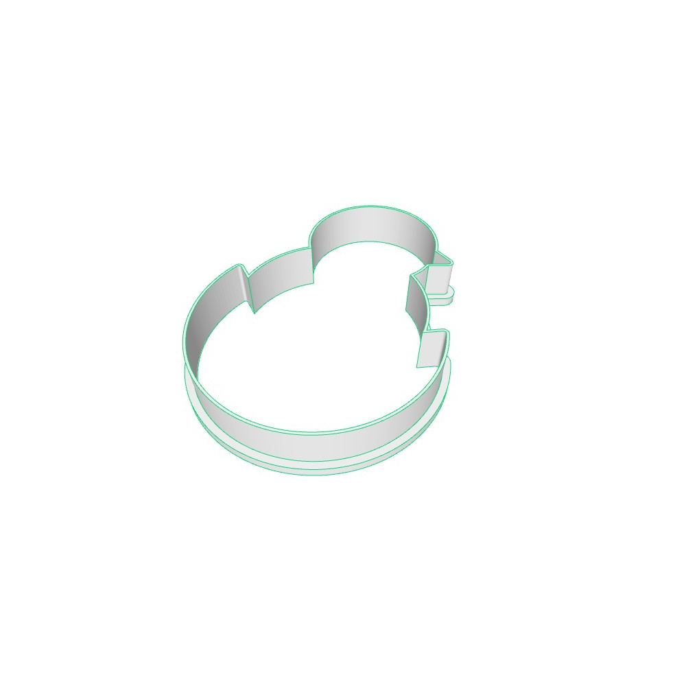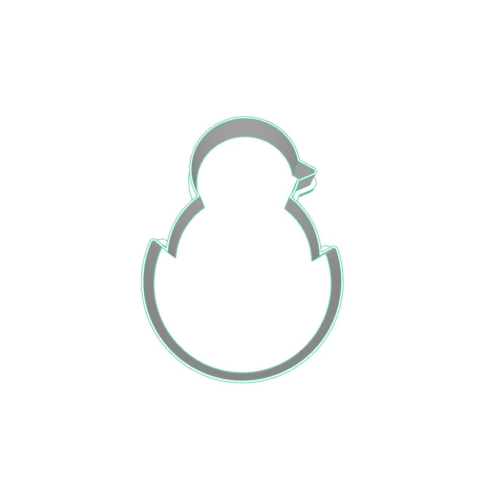 Jednodílné plastové vykrajovátko ve tvaru velkého kuřátka ve vajíčku.