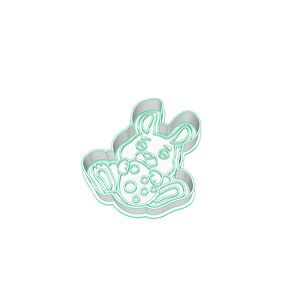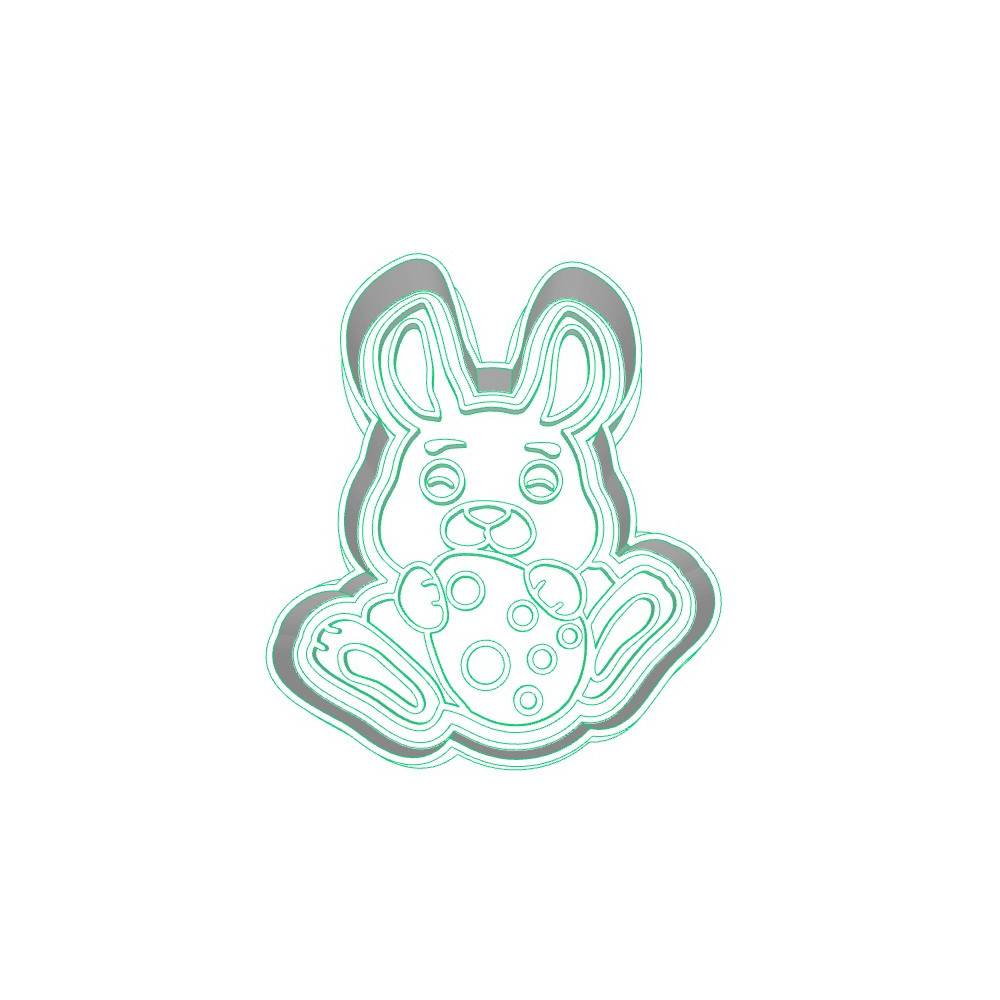 Dvoudílné plastové vykrajovátko ve tvaru sedícího zajíčka s velikonočním vajíčkem.