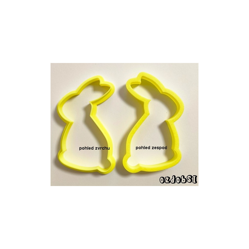 Jednodílné plastové vykrajovátko ve tvaru sedícího zajíce.