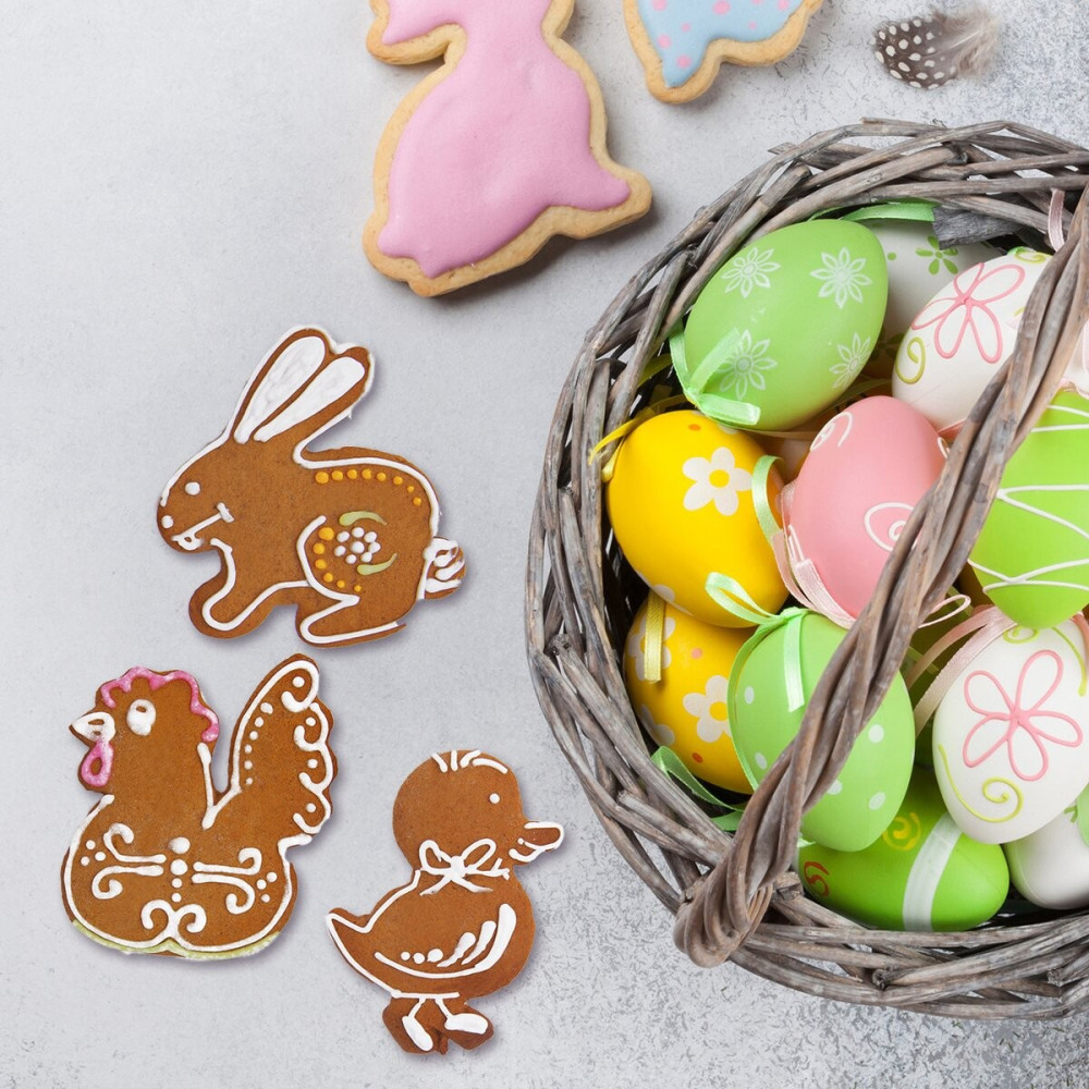Sada 3 velikonočních nerezových vykrajovaček – slepička, zajíček a kačenka pomůže s domácí výrobou perníčků a sušenek.