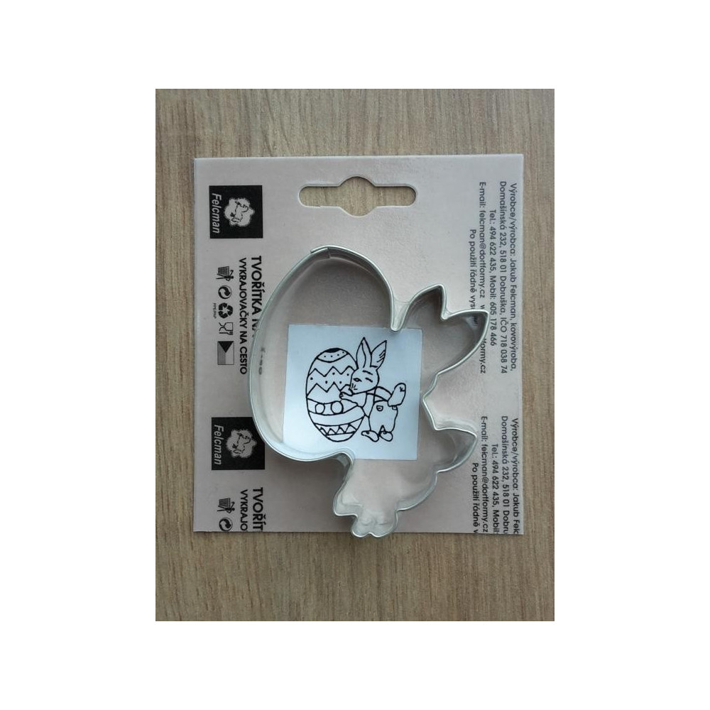 Balení obsahuje kovové vykrajovátko ve tvaru zajíčka s vajíčkem.