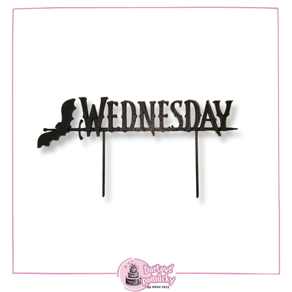 Wednesday nápis na meči s netopýrem - plastová dekorace.