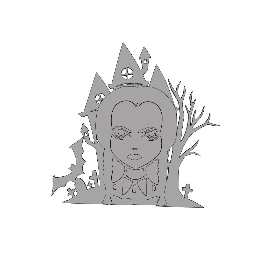 Wednesday strašidelný hrad s tváří hlavní hrdinky, netopýry a hřbitovem.