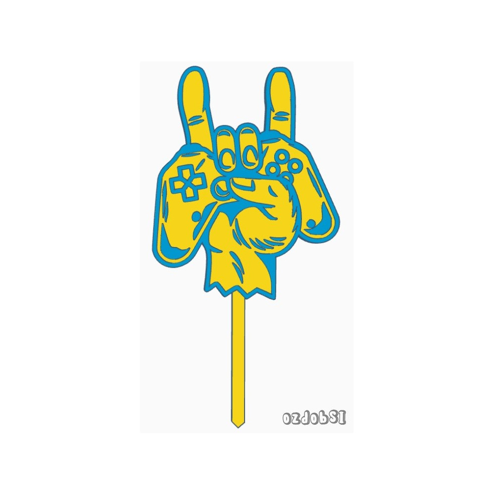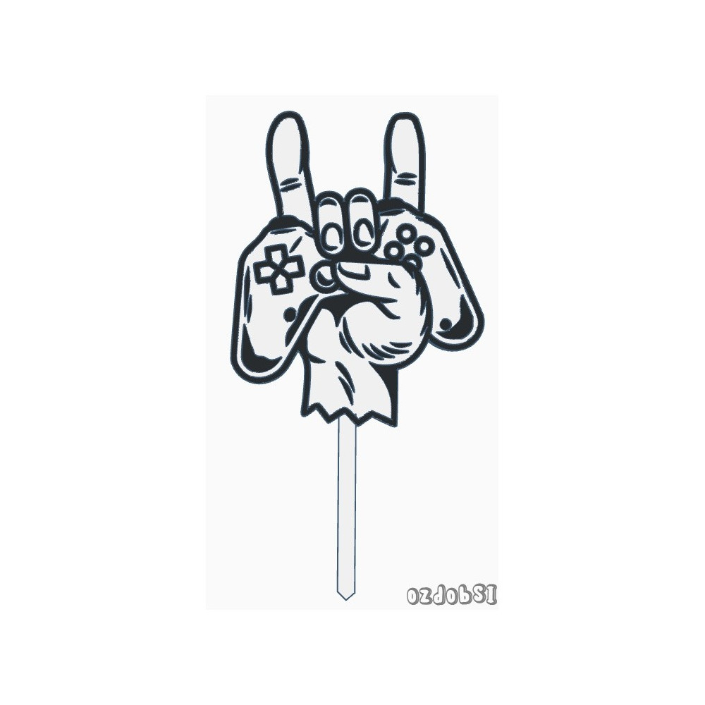 Dortový zápich s ovladačem PS4 a rukou.