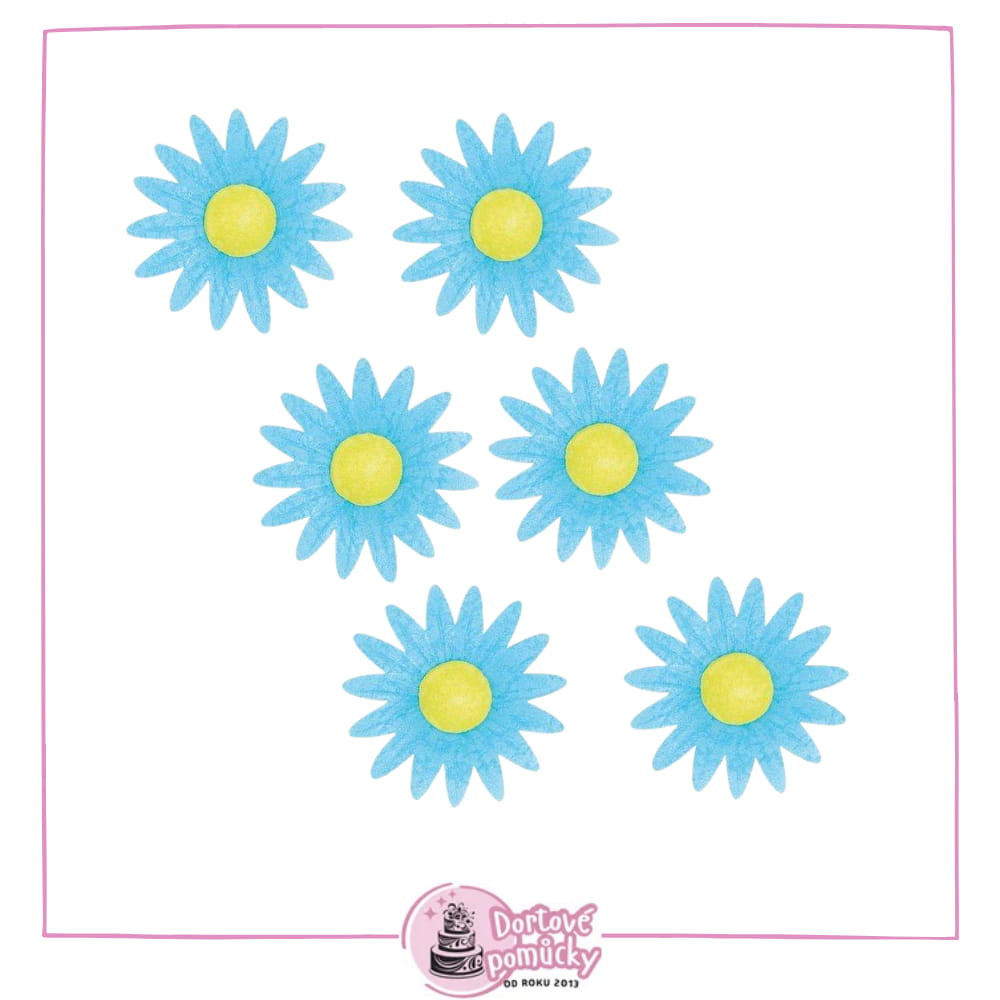 Krásná modrá jedlá kopretina z oplatky – balení 6 kusů, průměr 5,5 cm.