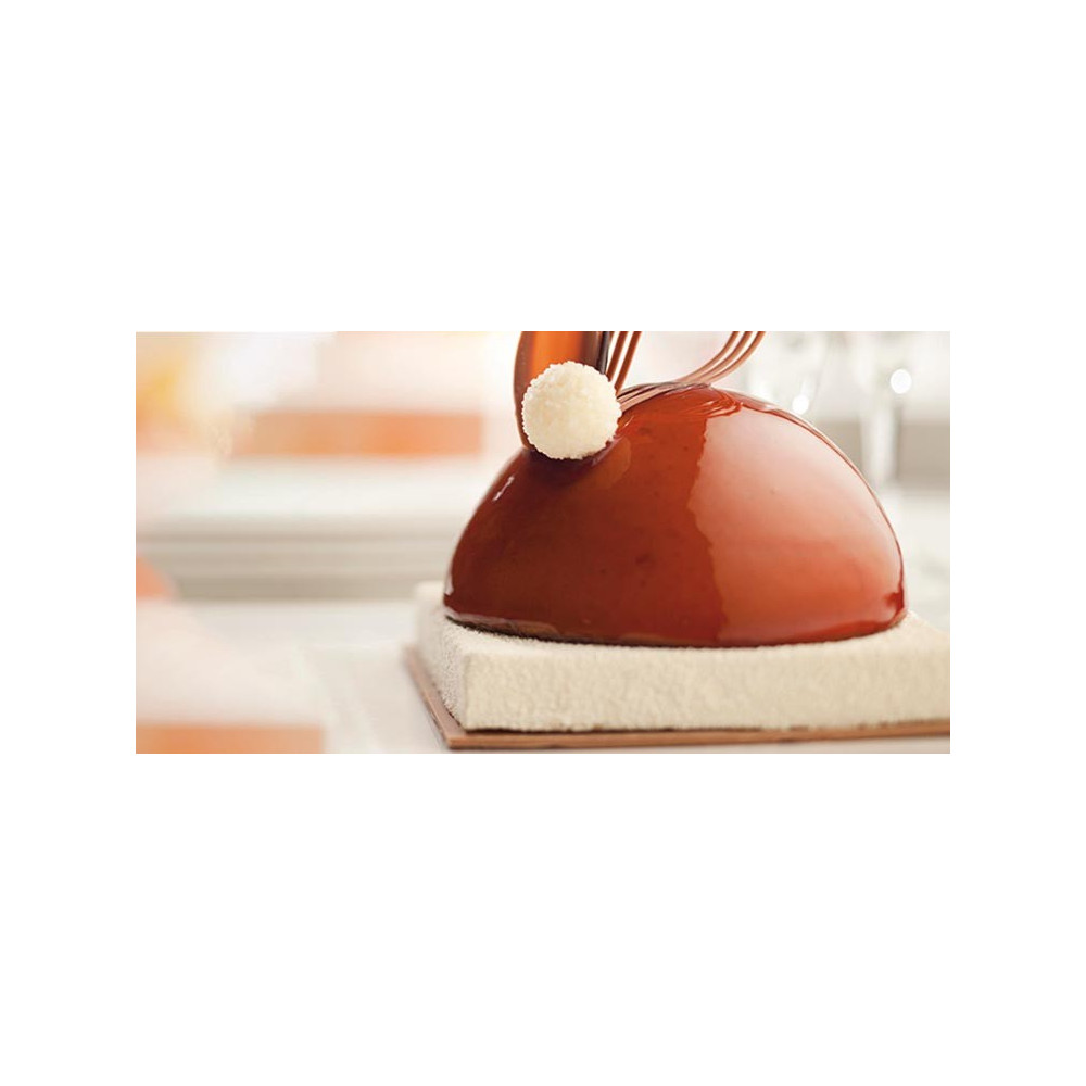 Zrcadlová glazura karamelové příchuti se používá k finálním přelévání dortů a zákusků.