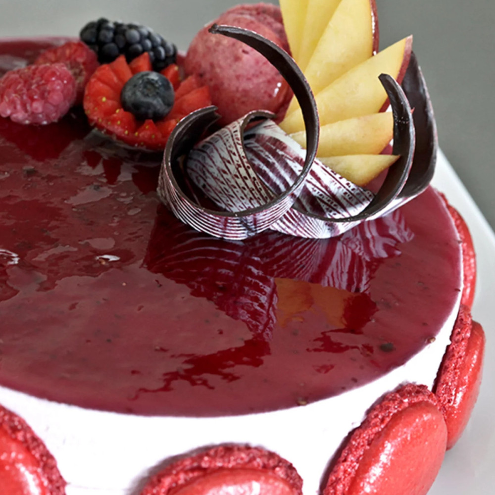 Vytváří dokonale hladký mirror efekt, který drží i na mražených dezertech až do –20 °C. Skvěle se hodí pro moderní cukrářské dorty a mousse dezerty.