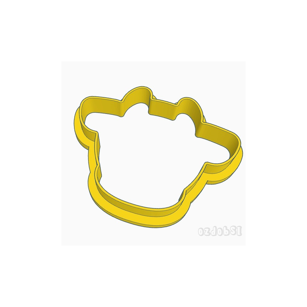 Jednodílné plastové vykrajovátko ve tvaru obrysu hlavy kravičky.